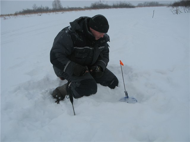 Порадовали рыбацкие глаза и руки долгожданной рыбкой, пора и честь знать. Расставляем жерлицы. Практически весь окунь весьма едовой, ставим то, что есть. Начинают загораться флаги, то там, то здесь, бегаем, как сумашедшие, а оказалось что окунь был весьма боевой и после местной плотвы запросто срывал флаги на жерлицах, пришлось все перенастраивать.