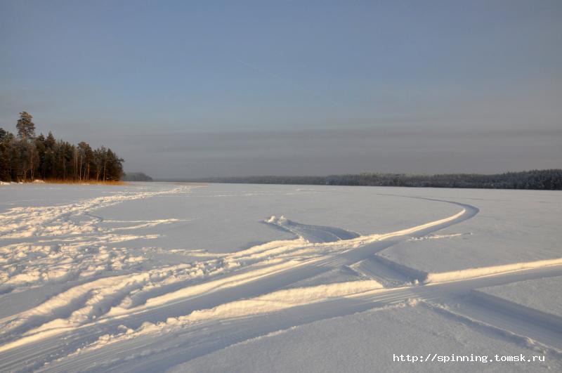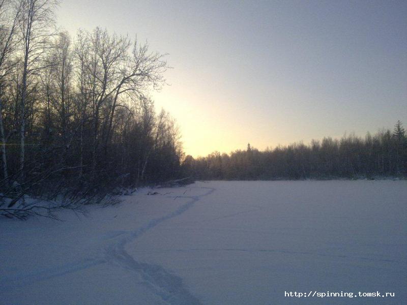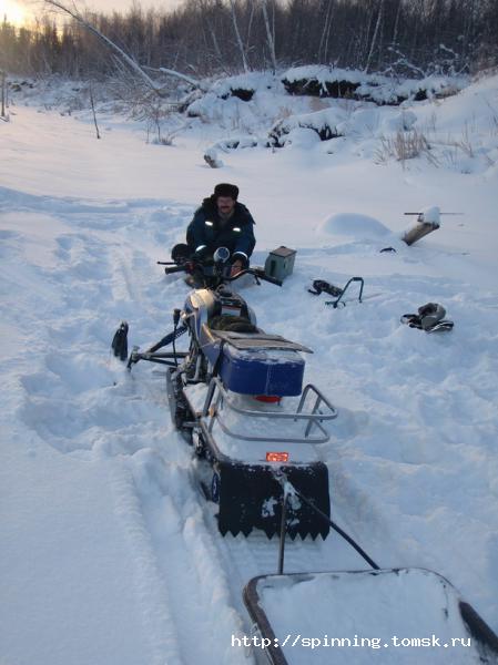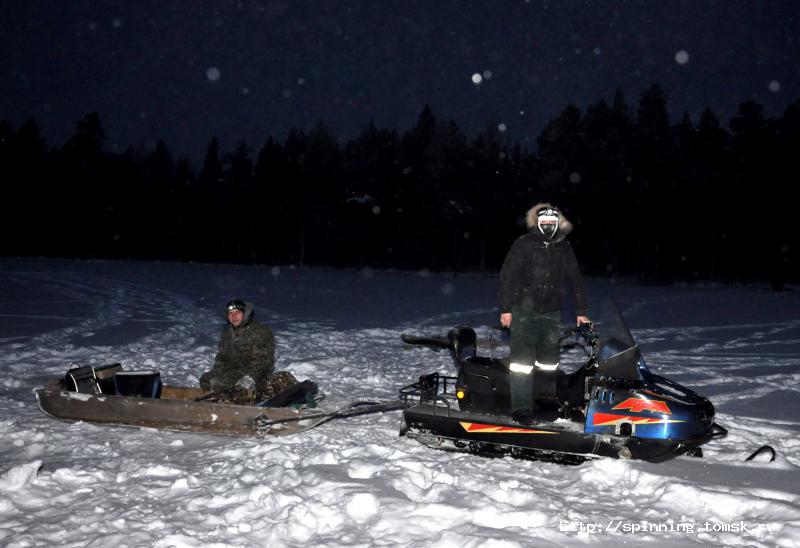 Дорога долгая, почти 300км, да и незнакомая. Промахнулись всего в паре поворотов, благо был навигатор с собой, 4 часа и мы на месте. Располагаемся в доме, за приезд! и в баньку. Баня была не очень жаркой, поэтому через пол часа решили ретироваться в дом и продолжить "за приезд!". Поужинали, договорились со снегоходом на 9 утра, т.к. рассвет только пол 10го, а до места 15мин езды. Как обычно, рыбацкая натура подняла мой организм в пол 6 утра, после чего уже и не смог заснуть в предкушении начала рыбалки. В итоге начинаем сборы с пол 8го, света по утрам в домиках нет, поэтому все сборы при свечах и с фонарями, накипятили чаю. Водитель снегохода весьма пунктуально был в 9 около нашего домика. Недолгая дорога и мы на месте.