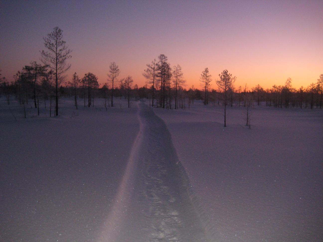 Быстренько ужинаем и спать. Подъем в 7:45. Заправляем термосы, собираем рюкзаки. Расспросили у хозяев, где коряжничек побогаче и пообширнее, выходим из дома в морозное утро.