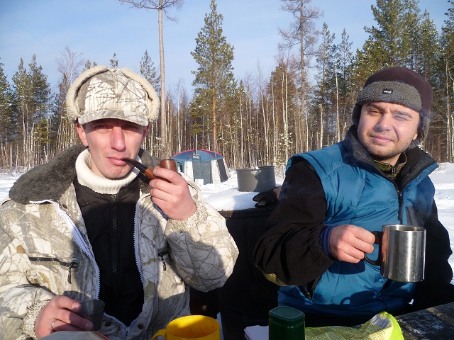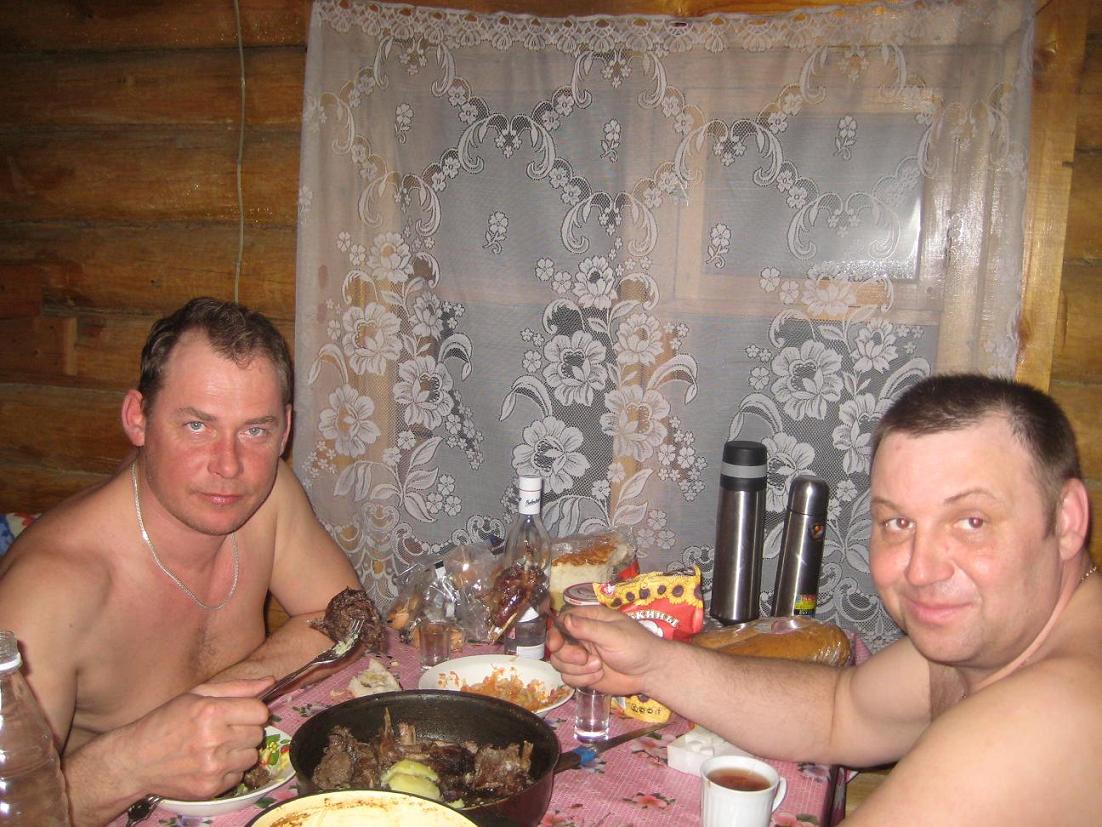 К 2-м часам ночи добираемя до заветной заимки, где нас уже заждались радушные хозяева, которые и банку истопили, и ухи из налима сварили.