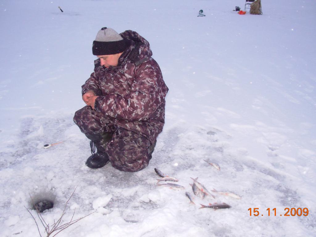 На поросе народ ловил бель. Мы выбрали участок свободный от людей, просверлили по нескольку лунок, прикормились, половили немного мелкую плотву,