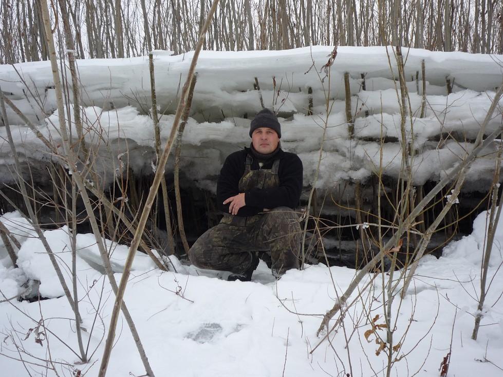 Ну и мы с Юрием скромненько так отметились... :oops: Приехали на любимое озеро еще затемно, прошли по любимому болоту, которое еще сильнее растаяло (открытая вода подошла практически вплотную к стоянке машин) и продолжало подтаивать в течение всего дня (видимо быстро намерзающий на озере лед выдавливает воду в болото), в результате чего я, на обратном пути снова провалился, но будучи готов к такой неприятности даже ничего не замочил :lol: а когда вышли на лед - с удивлением обнаружили, что кроме нас никогошеньки на всем озере и нету