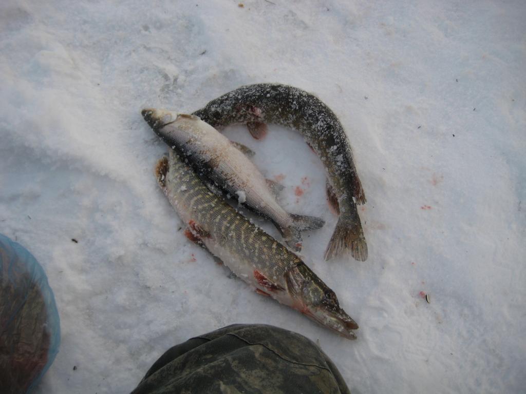 который к вечеру увеличился еще на несколько окуневых и щучьих хвостиков и мог бы увеличиться еще, но быстро накатившие сумерки вынудили нас в спешном порядке покинуть надежный лед и форсировать ненадежное болото. Вот такой нескучной получилась поездочка, которой мы, впрочем, остались очень довольны!