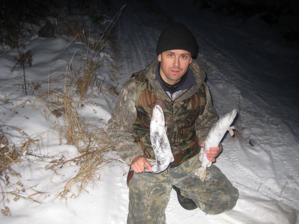 В субботу утром в часиков 5 был выезд на очередную рыбалку!!! приехав до места, выбравшись на лед приступили к этому прекрасному событию!! пробурившись, замочив мармышки и балансир!!! было принято на грудь :!: , для клева!!! в первой же лунке поклевка, подсекая, тяжело..... и оп срыв, вытаскивая крючек на мармышке обламался!(( :cry: хотя она не старая!!! поймав живцов, были раставлены жирлички!!! и тут через некоторое время первая поклевка и вот она уже в руках!!))) :?: