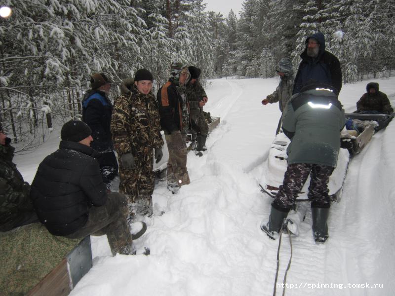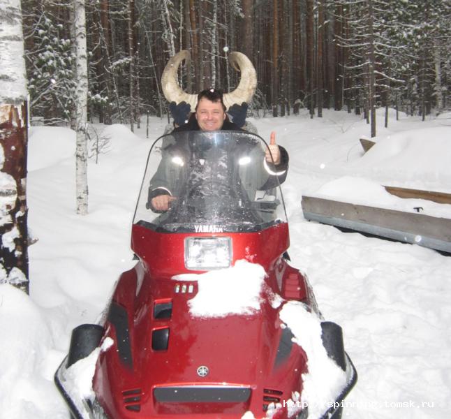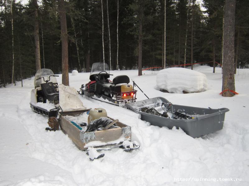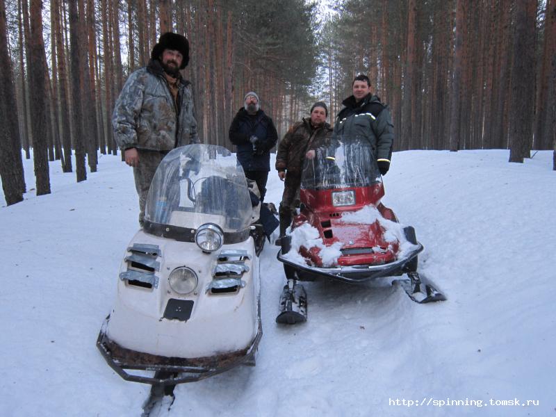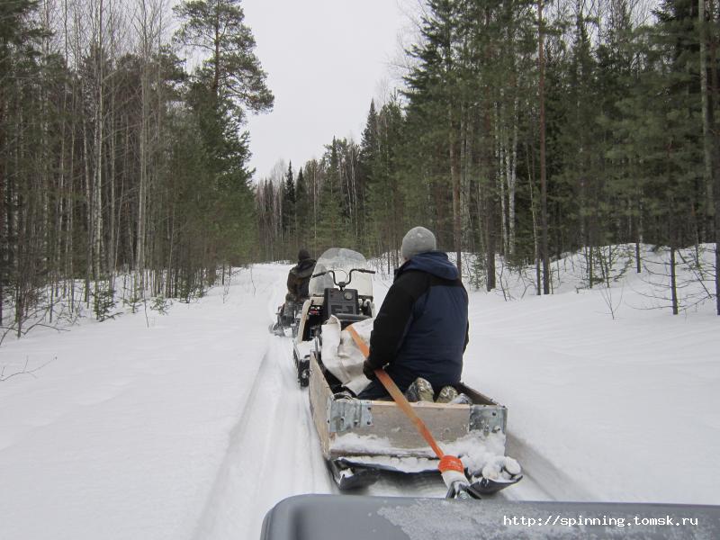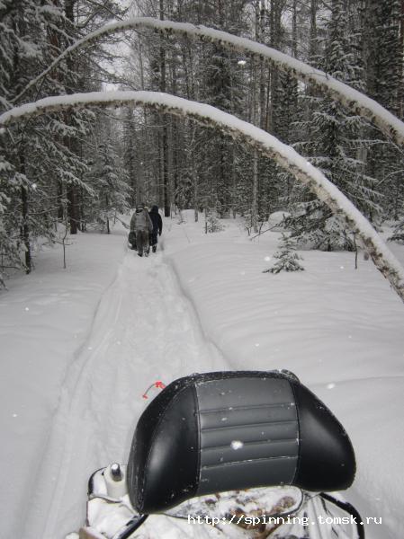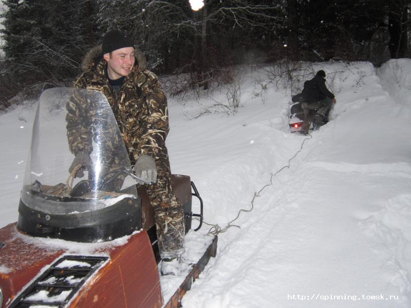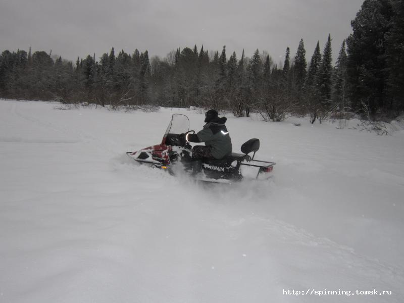 В воскресенье с утра все как штык на ногах. Завтракаем, грузимся в Викинг и прём на рыбалку. Саня уже пристрогался ездить по тайге и даже начал лихачить. На отдельных участках разгонялся до 50 км/ч, что сидевшим в нартах снежным человекам не очень нравилось.