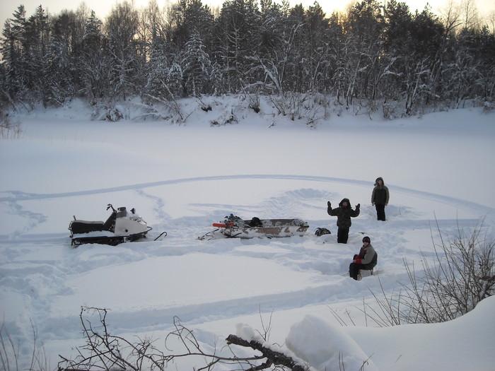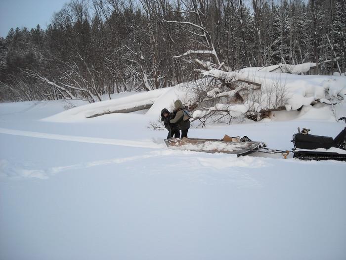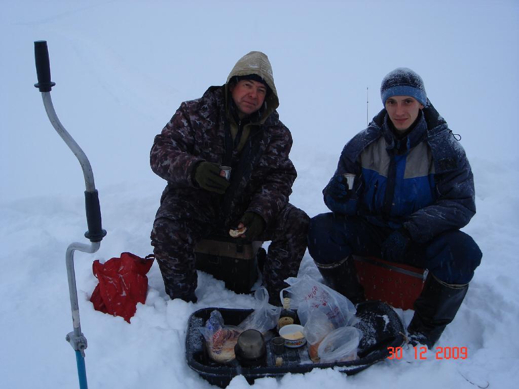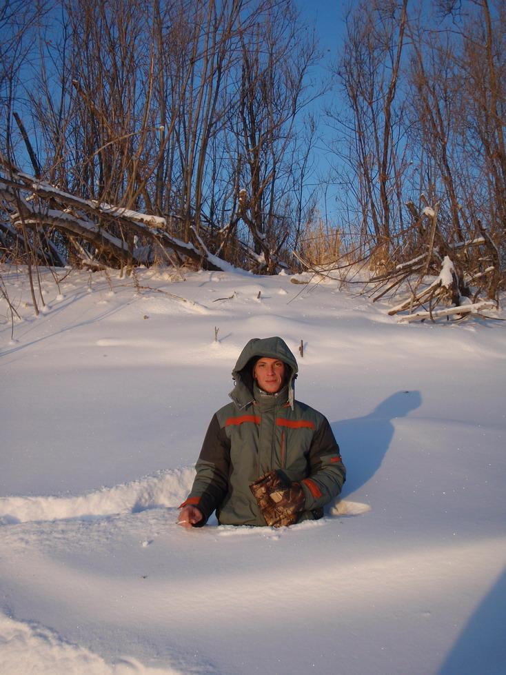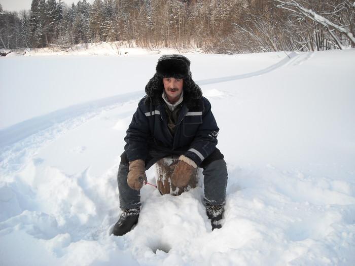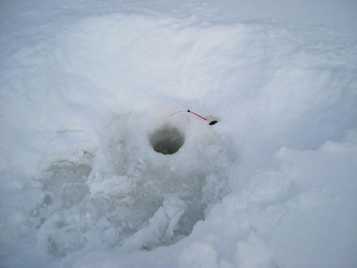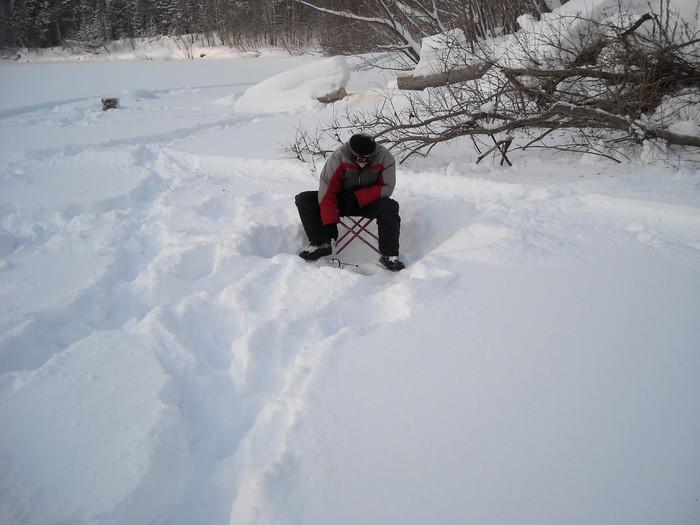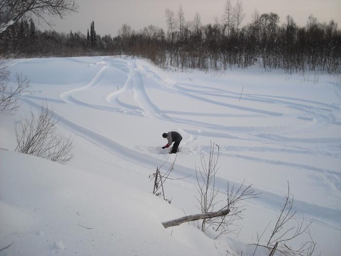 Утром с грустью посмотрели на термометр, который исправно и даже с каким-то злорадством показывал те же -34С, вновь ощутили всю прелесть северо-восточного ветерка и все же рискнули выйти на лед. Исследовали все доступные и тихие по нормальной воде, заливчики, но везде присутствовало течение и напрочь отсутствовала рыба. Юра решил проверить глубину прибрежного снега, снега оказалось много