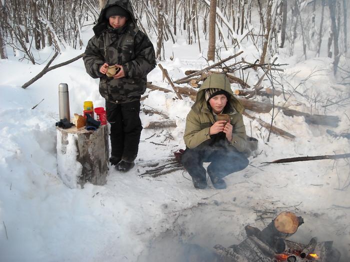 и мы засобирались в тепло - отогреться, отужинать и отоспаться... А на базе, благодаря гостеприимнейшим хозяевам уже вовсю топилась банька и закипал чайничек с крышечкой, обещая прекрасный вечерок. Так оно и получилось... Сначала отогрелись в отличной парной.