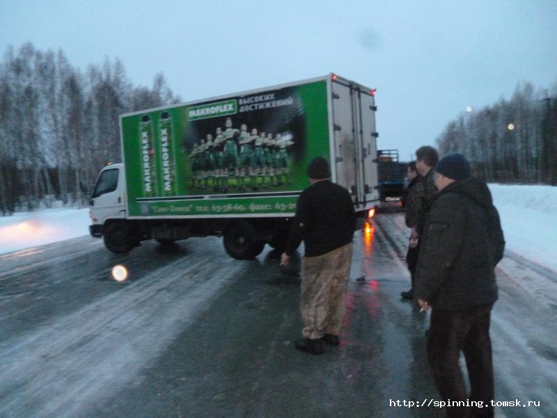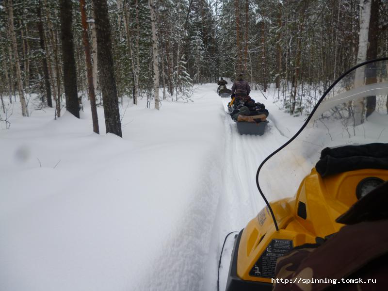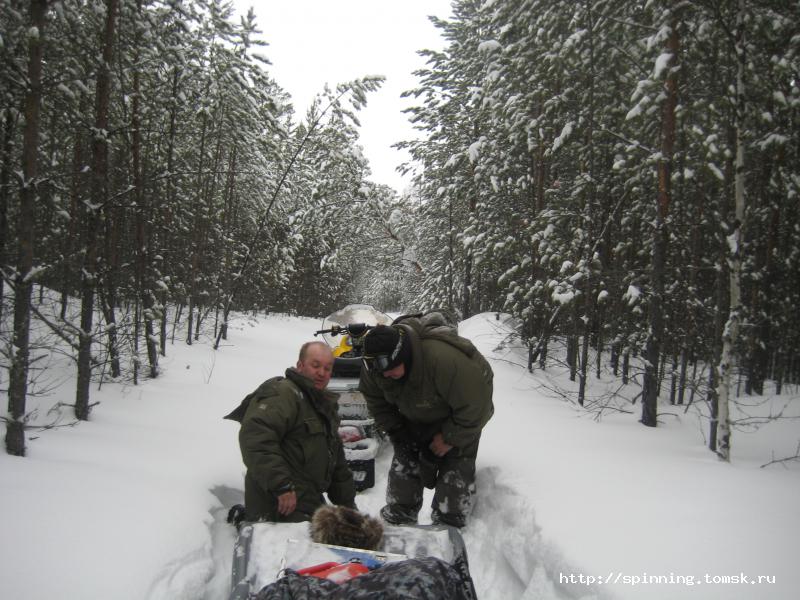 В это время у нас произошла потеря третьего бойца, Витек, всю неделю сомневался, а в пятницу с утра его сомнениям помог потоп на гаражах. Стали думать, обзванивать, к обеду откликнулся Жоржик. В тот момент, когда мы уже запасались провиантами, время дали ему немного, он только успел приехать домой, собраться, как я уже ждал его у подъезда. Держим путь ко мне на работу, где стоит прицеп, и Вовчик в ожиданиях. По приезду приходиться быстренько выполнить поручение и в 15-00 мы выезжаем из Томска. Вроде ничего не забыли, осталось только заправить бенза на снегоход!