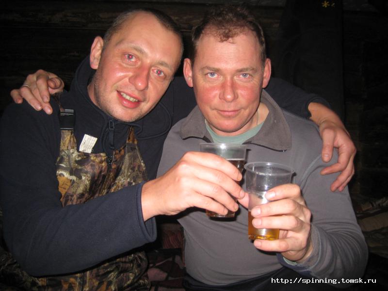 Мы в первую очередь распаковываемся, достаем провианты, встречаемся с нашей компанией, знакомимся с кем не знакомы. Переходим в избу, усаживаемся за стол, за встречу и стали рассказывать о наших приключениях, мужики о своих, как они в гололед с Томска до Могочино ехали 6,5 часов, потом как они дорогу били 6 часов.
