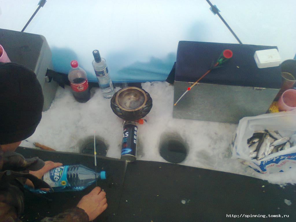 Пока мы вели беседы, температура за бортом резко стала падать вниз, и к пяти утра составила – 34 с, да еще и с ветерком. Причем в Кемерово и Новосибирске было -4 и шел снег. Утро началось с обсуждения плана, я был против поездки на дальнее озеро в такой мороз, Игорь поддержал, но так как Рома был новичком в этих местах, он горел порыбачить и сегодня. Решаем, что я остаюсь на заимке и собираюсь, а Игорь с Ромой порыбачат не далеко от заимки. Минут через 40, рыбаки прибыли, - 34 да с ветром, делают свое дело. Принимаем решение перекусить, грузить вещи и оправляться в Север.