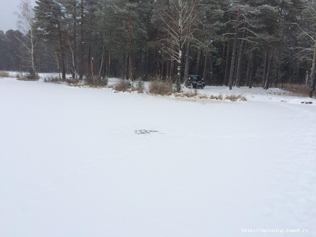 Всем привет! Распечатал на выходные лед!! Ура!!! Были в Колпашевском районе. Три км пешком от дороги, прийдя на озеро по пытались выйти на лед, но первая попытка не удалась лед не хотел держать страждущих острых ощущений. Осмотрев окрестности, обнаруживаем узкий длинный рукав , который соединяется с основным озером. Испытываем лед на прочность он даже не трещит. После разбуривания мерим толщину льда . она примерно 5 сантимов.