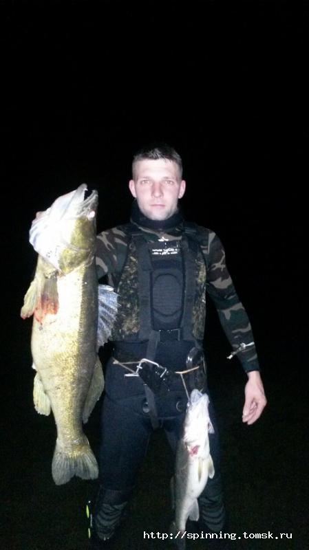 Как то раз числа так 2 сентября, звонит у меня телефон, поднимаю трубу, на том конце Дима, грит смарел форум, там типа Санек нафигачил рып, судаки на 8 кило прут табунами, и причем где? да на Томи, в районе города, во блин, говорю, я видел его фото, но смарел с телефона, судя по отчетам на 6 кило вроде было, полез проверить, точно, на 7.9кило судачок. Звоню Саше антиресуюсь как и что, оказывается в Томи прозрак почти под двушку, никогда такого прозрака в нашей реке не видел, я сильно удивился, а виноват во всем Сентябрь, дождей практически не было, и погода стояла теплая. Отлично, перезваниваю Диме, он тут же предлагает ехать на Томь и опробовать прозрак и попутно забрать там все трофеи, говорит едем к старому мосту, там рып немеряно, эх ладно, согласен, давай скатаем, а то как то нонче с нырялкой негусто у меня. Вечерком дома готовлюсь к поездке, надел штаны от гидры и оставляя лужи в комнатах жду Диму, обещался к 10 вечера подъехать. Периодически беру тряпку и подтираю полы за собой )). Дима звонит и говорит, что уже почти подъехал, побырому одеваю остальную гидру, хватаю мешок со снарягой целую на ночь жену и бягу на улицу. Дима подъехал, перегружаемся в мою машинку и едем к мосту. На реке вдоль нашего и дальнего берега ходит народ с фонарями, видать лучат. Ищем съезд к воде, на пузотерке то нахрапом не взять, либо съеду потом не заползешь, либо оставлю бампер на какой-нибудь ямке, крутимся в поисках и наконец то съезд найден. Выходим на улицу, бодренько так, по градуснику на улице аж +4, и ветерок, вытаскиваем остальную снарягу, готовимся и лезем в воду. У берега прозрак шикарный, класс, лезу в глубь прозрак почти трешка, вот это да, неожидал, сплавляюсь в низ по течению, свечу дно, рыб чего-то не видать, потом течение ускоряется, все проносится со скоростью поезда, иногда даже не успеваю осмотреть участки, ну ладно думаю сплавлюсь до моста а там по берегу пройдусь в верх, слышу какой то шум, что за ерунда? Епть мимо меня практически со свистом вдруг начинают пролетать камни и довольно таки близко, в считанных сантиметрах и скорость приличная, поднимаю голову я оказывается влетел в порог. Кругом бурлит вода, камни практически выходят на поверхность, пару раз хлебанул воды через трубку, стало не по себе, быстро сообразив, что есть сил гребу к берегу, машу ластами, хорошо что у меня был недогруз (забыл с прошлой поездки груза с ремнем у товарища, дома насобирал что есть да и Дима подогнал кило 6, в общем плыл налегке) это мне здорово помогло, выставляю в бок руку и периодически гашу удары о камни, и гребу к берегу, течение здорово спало, впереди на течке увидел небольшого налимчика, который героически пытался удержаться на течении, и надо сказать ему это удавалось, трогать его не стал, пусть малыш подрастает. Ну вот я выбрался на берег, паники в воде не было, половину порога прошел удачно, ни разу не прилетело, нет ни царапин ни синяков, смотрю где напарник, пытаюсь его предупредить об опасности, его не видать, освечиваю порог, света от фонаря не вижу, лишь бы не влетел вслед за мной, но вдруг вижу, блеснул свет метрах в 150 в верх по течению, оказывается Дима лазил около берега, и не далеко удалился от точки входа в воду. Ну и отлично, двигаюсь к напарнику, вижу мужичка с фонарем, оказывается он острожит налима, увидев меня он здорово удивился, говорит ни разу такой снаряги не видел,
