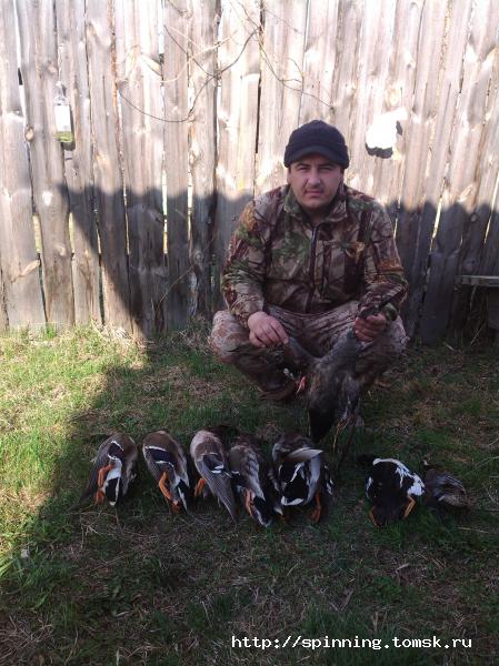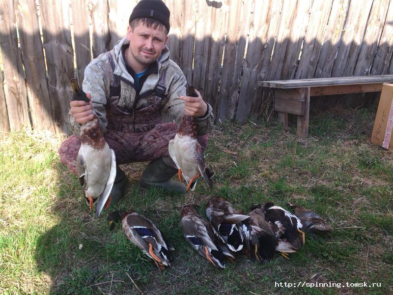 Вечерок не плохой, по возвращению, нольпятушка и на боковую, легли в очередной раз снова в первом часу, подъем в 4.00, в лодку и бегом на скрадок. Приехали уток рассадили и в ожидании, не успели залезть в скрадок, летят родимые, но нас увидели и прошли мимо, но не долго пришлось ждать, летит крякает, спиралька его болтается за км видать, сел на лужу и плывет такой гордый, подумывая ну вот сейчас я совокуплюсь, тут из кустов в него летит 5 ка из 16к. начало этого дня положено.