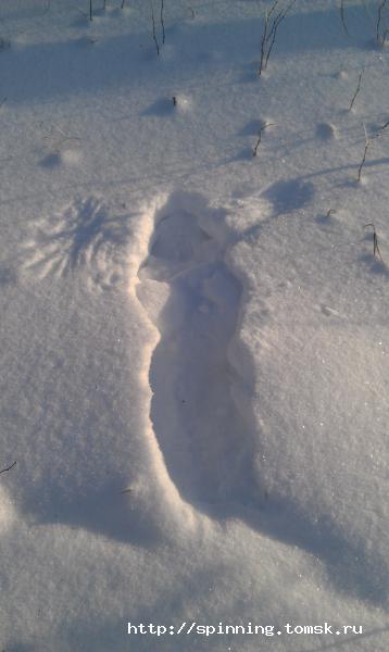 Дальнейшие поиски привели нас на место жировки зайцев, где они набили такую тропу, что можно было по ней идти без лыж, спокойно бы выдержала.