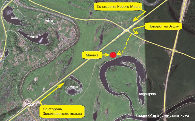 Те кто едет через старый мост Доезжаете до Зоркальцевского кольца и уходите по съезду на новый мост. Доезжаете до поворота на Эушту, сворачиваете направо (на Эушту), и метров через 50 сверток направо на грунт. Озеро на юге от вас (т.е. прямо по курсу).
