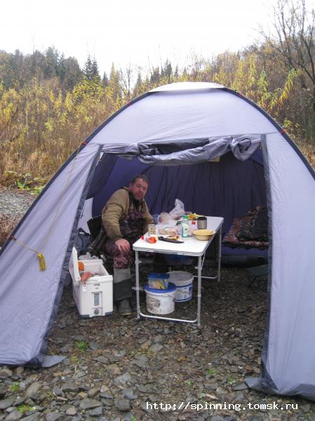 Стараясь думать не о медведике, а о тех больших хариусах, которые ушли от нас именно здесь в прошлый поход, быстренько ставим палатку, короткий перекус