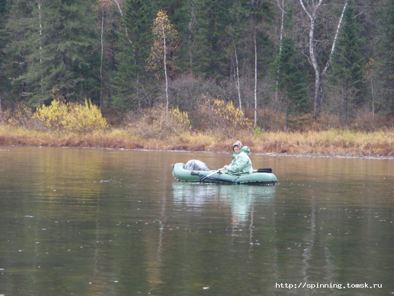 Мимо проплывает двухлодочная компания, у них поразнообразнее - и купальный сезон продлили, и надергали полтора десятка некрупного хариуска, правда на совершенно естественную приманку - опарыша. Саня совсем погрустнел, потому что у него был опарыш, но остался дома... ну что же, вполне понятно - осенью, когда всякие летучие насекомые исчезают, натуральная белковая приманка выходит на первый план... ну что ж, учтем на будущее...