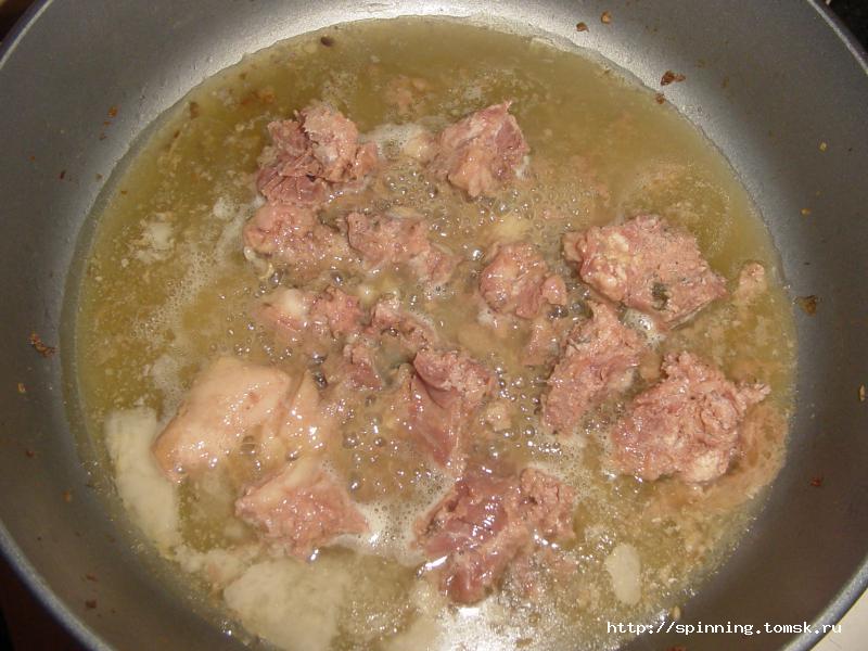 на небольшие кусочки. При растопке на сковороде, мяса становится существенно меньше на вид.