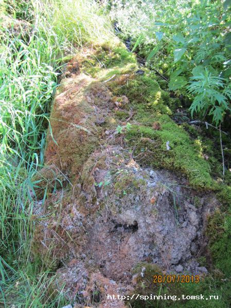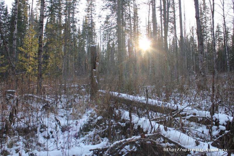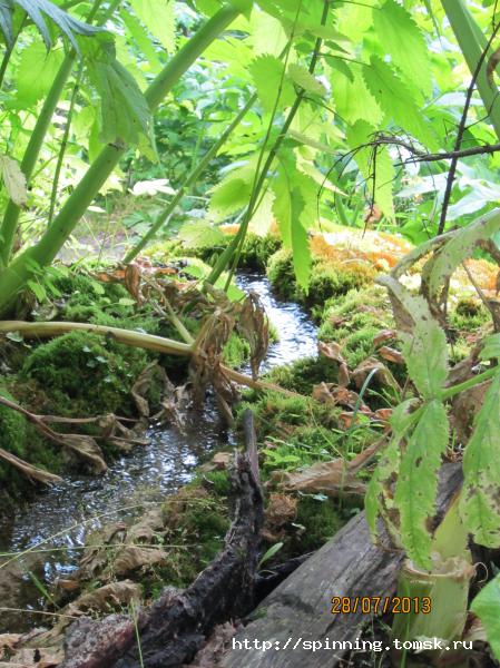 Вернулся на трассу, впереди еще полдня. Решаю, не откладывая, ехать по дороге, подсказанной трактористом. Она, действительно, немного получше, было пару мест, но осторожно прошел. Ура! Я на точке! Теперь ножками. Через ельничек спускаюсь в ложбинку ручья, поднимаюсь вверх.