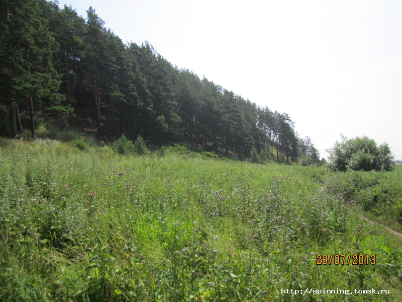 Прошел километра два туда и потом обратно, трава с кустарником выше меня. Солнцепек. Комар с гнусом. Кругом под ногами (невидимые) бревна. Еле дополз до машины. Вернулся.