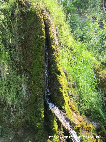 За одним из столов сидит компания, около восьми человек, перекусывают. Разговорились. Они пришли из Межениновки. Оглядываюсь по сторонам, а Чаш то не вижу. Подсказывают, что надо спуститься в ложбину ручья, на его склоне и будут Чаши. По склону уложен деревянный трап.