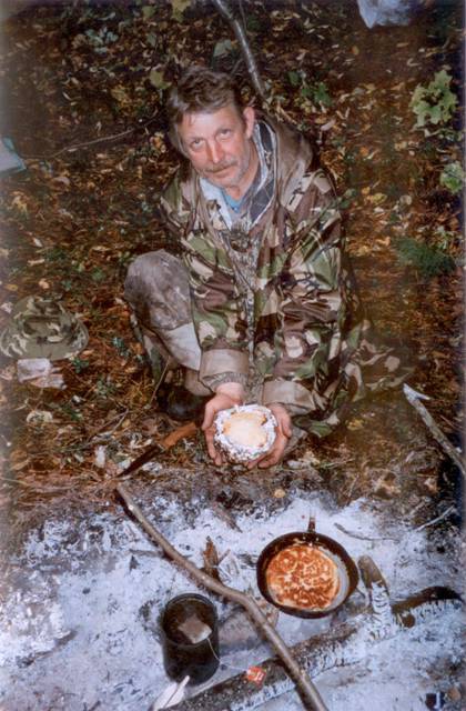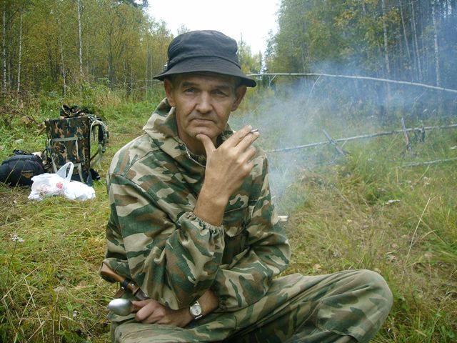 Следов пребывания человека не много, примерно на порядок меньше, чем следов пребывания медведя. То есть медведь там живет, а человек забредает иногда. Похоже, что довольно большое поголовье медведей там просто никогда не видели человека и им жутко любопытно, что это за "зверь" такой. Точнее сказать - им любопытно, а нам жутко. Поскольку ночевать приходилось на верху, часто на самой медвежьей тропе, то как бы ни были вымотаны перетаскиванием через завалы - вечером ежедневный лесоповал - два куба дров, толстенных комелей, чтобы тлели до утра. Все это конечно же благодаря Серегиному упрямству и упертости, я может и шланганул бы когда. Но тогда, может статься, и не писал бы этих строк. И так чувствовали себя порой в палатке как Твикс в фантике. Консервы, блин, на медвежьей тропе. Однако, ничего - управишься, пожуешь что Бог послал (а он посылал таки, грех жаловаться), спиртику дерябнешь и ладненько. А после трех завалов в день, да заготовки дров, спиртик так душевно по жилам разбегается - "Кто? Медведь? Да пошел ты на ***, медведь!"