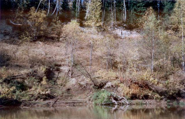 В верхнем течении речка едва ли шире чем 8-10 метров, но много приличных омутов, курюшек, глубоких весьма. Речка очень петляста, как впрочем и все реки Равнины, но поймы практически не имеет - почти нет песков и как правило, оба берега высокие - от 3-4 до 5-6, а местами и до 8-10 метров.