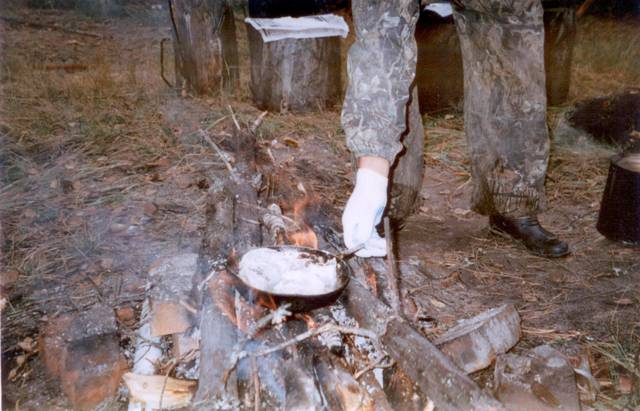 То что у меня в руках - это хлеб, а то, что на сковородке - это оладьи, мы их пекли через день.