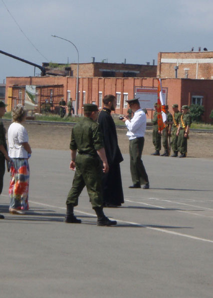Но поп был боевой, видать сам недавно служил - голос командный, выправка строевая, речи вел правильные, типа защищать Родину - дело богоугодное и т.д. Нормально выступил.