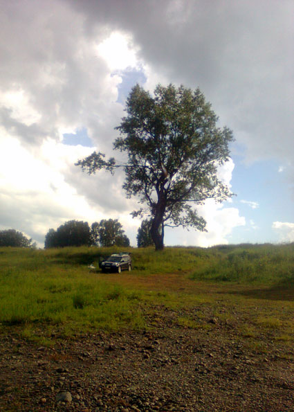 Пацаны на сайте подсказали секрет (спасибо, кстати), секрет забит в навигатор и - в путь. Путь недальний, и вот она Юрга. Тут обнаружилось, что то ли секрет с дефектом, то ли китайский навигатор неправильно расшифровал целеуказание американской GPS . Прямо на въезде адский дивайс показал налево, я повернул, и через 50 м встретил колонну машин региона 70, тоже ехавших в армию, но приехавших к зоне. Колонна оказалась оснащена такими же приборами, ну и надо полагать, такими же секретами. В результате пришлось прибегнуть к навигационным системам отечественной разработки типа "сусанин". Несмотря на ранний час, таковых оказалось немало, и вскоре, миновав "полуторку" (невероятно популярный местный ориентир), прибыли на место.