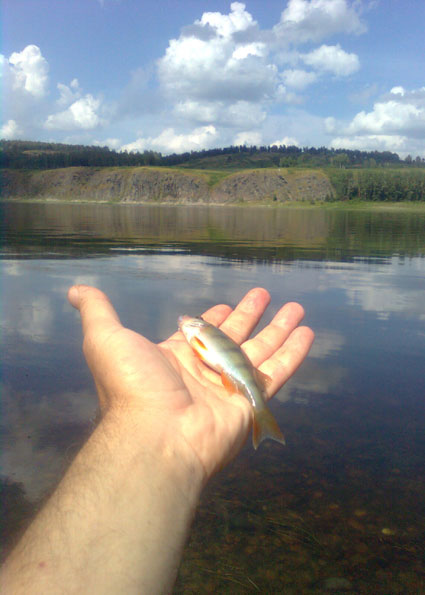 Что могу сказать в результате? Рыбы в Юрге - пресс! Невозможно закинуть блесну, моментально цепляется эта самая рыба. Специально сфотал на фоне местных гор, чтоб не обвинили в фотошопе.