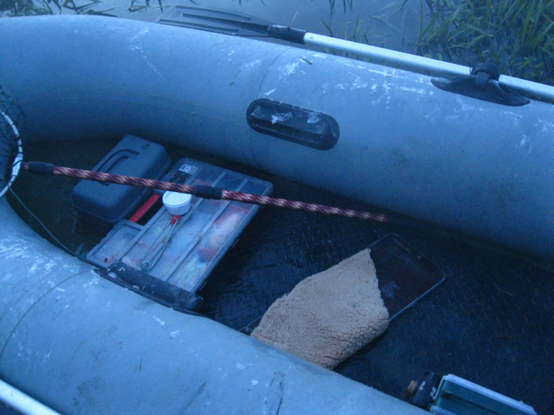 Тут замечаю, что-то странное в воде, плавает по верху мотается из стороны в сторону, подныривает, но не уходит с поверхности. Пытаюсь сфотать, полноценный кадр не получается, тогда записываю на видео, и пытаюсь подсачником вытащить рыбу. Не удалось, уходит под лодку, выныривает в 3 метрах от неё. То ли карась то ли лещ. Отвлёкшийся на карася стал замечать что, смеркается, надо обратно на стан, существенно похолодало. На берегу, разводим костёр