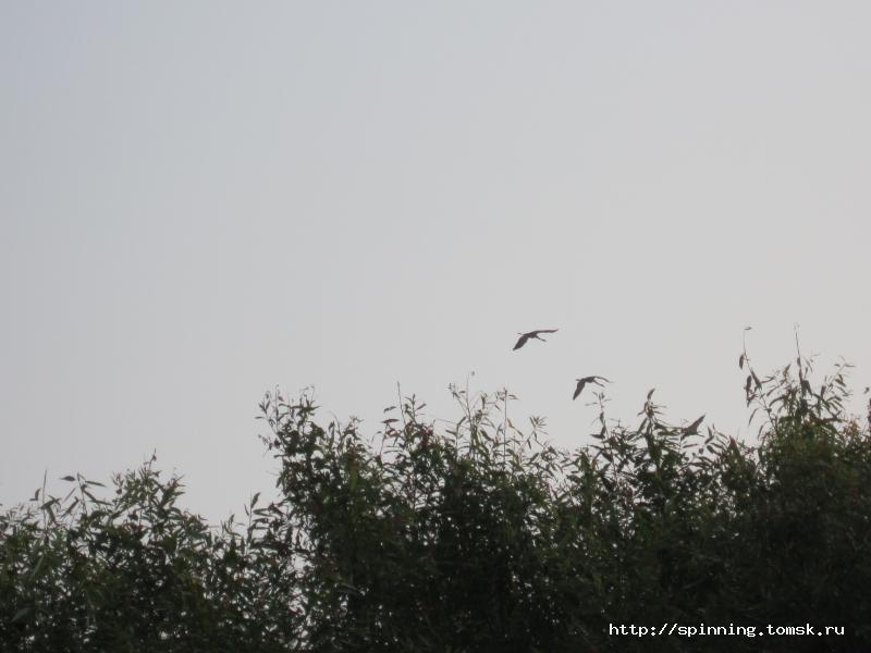 Пока завтракали и собирались на рыбалку, услышали над головами странные крики, это оказалась стая журавлей.
