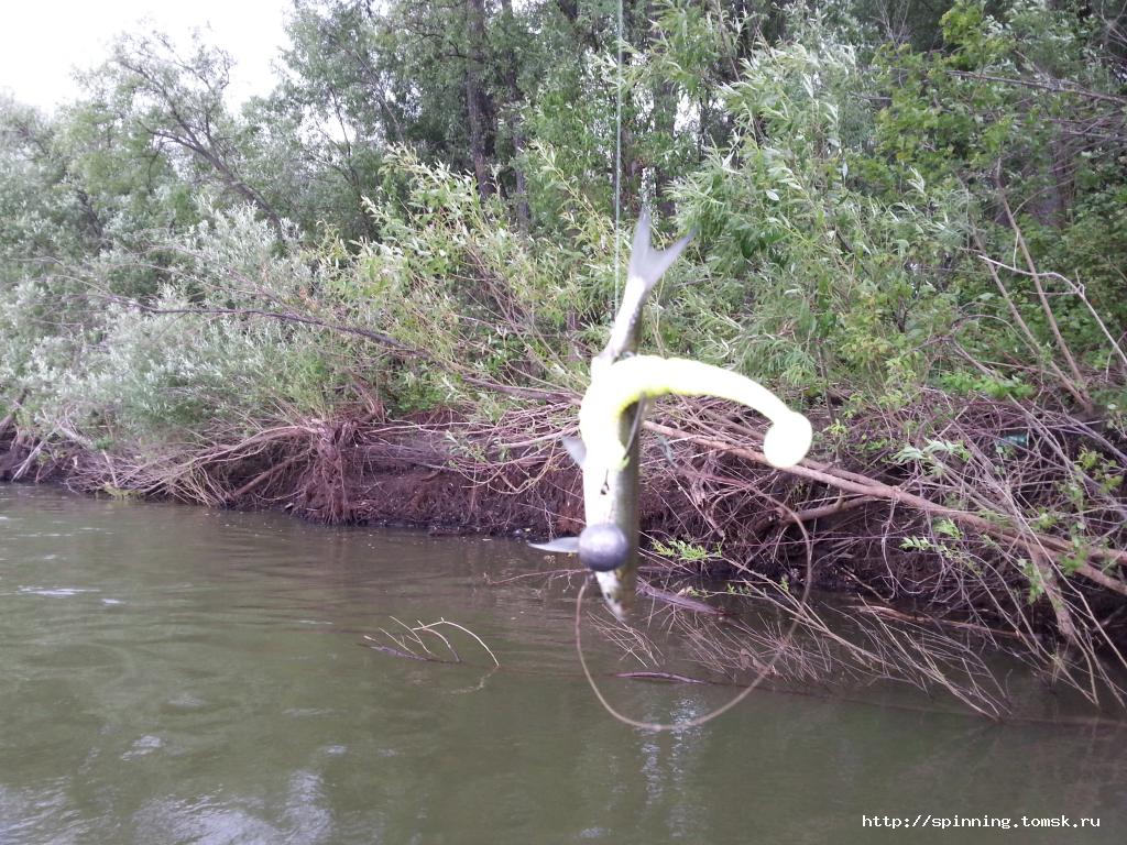 Забрасываем их в Таган, а сами уходим сухой протокой в протоку Оби, которая выходит на КП. Пороба поимки в отвес, в коряжнике. У сани садится окунь, потом зацеп. У меня поклевка, спиннинг в дугу