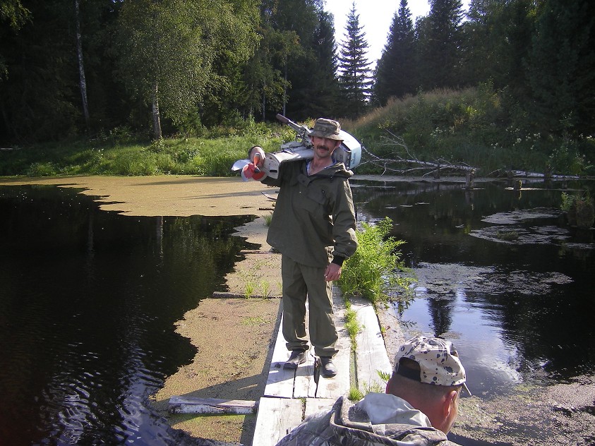 Испытания прошли на оценку "отлично", хозяин остался жутко доволен! :20: День уже клонился к вечеру и мы решили не делать дальних выездов, а ввиду полного Лёхиного одиночества, т.к. вся семья отдыхает на югах, остаться ночевать дома. Но приготовления для утренней рыбалки были сделаны. После прошлой поездки Ямаху решили больше не мучать в корягах и Лёша в своих закромах нашёл Ветерок-8, который и был унесён на берег