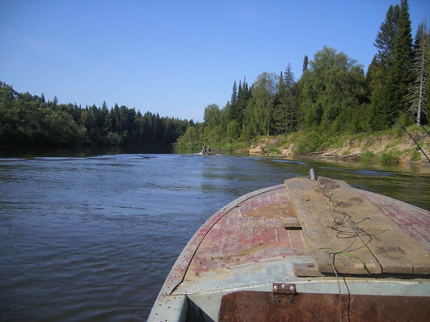 Полудневные сборы, затаривание в магазинах, погрузка шмоток в лодку и в путь. Решили ехать в Обскую протоку недалеко от Александрово, там у знакомого покос и из привезенного на берег старого речного толкача сделано подобие жилья. А из самой протоки (шириной 500-700 метров) есть входы в две других меньших проточки и в одну болотно-таежную речку. Место по нашим, городским меркам весьма знатное, а по местным - ничего особенного, просто удобное и не далеко.