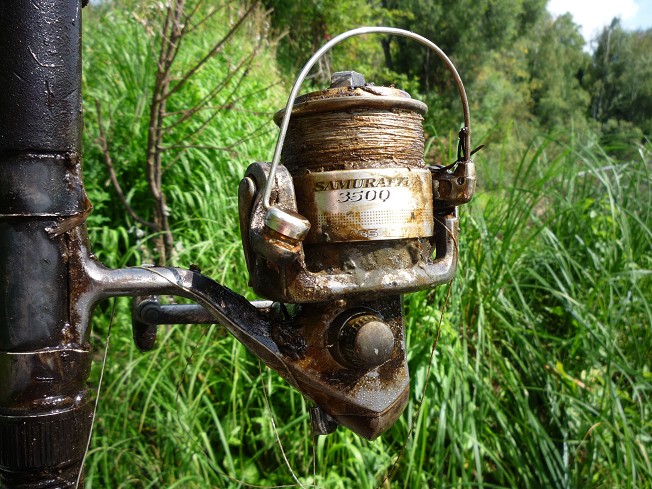 Мы никак не могли понять, что это такое! А когда эта палка всё-таки была извлечена на свет Божий, мы чуть не упали от удивления, т.к. ей оказался... спиннинг! :shock: :shock: :shock: