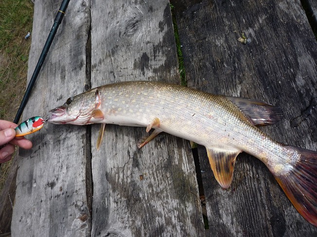 На фотографии где щука лежит на фоне зеленой травы - поймана на самодельный "джерк" сделаный из зубной щетки Oral-B с батарейками... испытывал влияние шума на щуку... Можно кидать как включенную (вибрирует жутко) так и выключенную... Разница есть:))