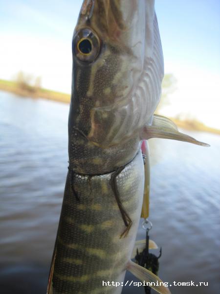 На неделе по вечерам (часов с 22-00) езжу на Томь погонять судачка после трудового дня и ежедневного нескончаемого ремонта квартиры. В четверг припозднился, выехал в одиннадцатом часу. Решил половить судака воблером, приехал расчехлил свой ультралайт (тест 2-12, плетня 0,12, 8 либров). В прошлый раз была проблемка - случались перехлесты плетни за тройники воблера, а поскольку в темноте распутать тонкую плетенку проблематично - намаялся, в этот раз решил поставить поводок - его проще отцепить от тройников. Итак, ночер, тишина, видны только фонари на той стороне, да разноцветные дорожки от них, мы одни я и Томь.Гоняю воблерка, но -тишина. Рядом плещется мелочь, судак молчит, игнорирует, подлец, хотя уже начало первого - должен вовсю гонять малька! Полоскаю дальше, при подмотке в трех метрах от берега воблер резко останавливается, как об камень. Мелькает мысль - странно, зацепов здесь точно нет, автоматом делаю подсечку и вжи-и-и-ик, поехал фрикцион, спиннинг в дугу, неведомая рыбина начинает мощно выбирать десятки метров шнура. Кажется вечер перестает быть томным - мощный выплеск адреналина бьет в руки и в голову, рыбина немаленькая, это ясно, а у меня спиннинг спичечный, да плетенка тонюсенькая.Унимаю дрожь в руках, вспоминаю, что главное не форсировать события, нужно ее умотать, однако противник даже и виду не показывает, даже намека никакого не подает, что собирается сдаваться! Шнур сходит с противным потрескиванием, соображаю, что фрикцион подтянул несколько сильнее - чтобы судака ловчее подсекать, однако рыбина не позволяет его ослабить, выкачиваю - сматывает, опять выкачиваю - опять сматывает. Ночь, темнота, рыбак и его достойный противник, связанные тоненькой ниточкой плетенки! Первый выхлоп адреналина закончился, прихожу в себя полностью, соображаю,что долго такого перетягивания каната плетенка просто не выдержит, улучаю паузу между Её потяжками и быстрым движением пальцев успеваю приотпустить фрикцион - словно почувствовав мою заминку, рыбина рвет в глубину, но я ликую - успел-таки, одна маленькая победа есть! Тревожно за 5 сантиметровый воблерок с его мелкими тройничками - не понятно ведь как она засеклась, да и жала запросто может разогнуть с такими рывками. Потерял счет времени, в темноте потерялось ощущение реальности, живу эти (минуты?, секунды?) мгновения в событии, ноги работают автоматически, в темноте как бы запомнив кромку берега. Правая рука устала, болит бицепс, но шнур держу натянутым, периодически поддерживаю спиннинг левой рукой, однако противник не дает расслабиться - снова смотка, и снова выкачиваю. Заныривает и наваливается свинцовой тяжестью на спиннинг, прижав приманку к самому дну, и тогда у нас возникаю передышки в доли секунд, я жду, когда она пойдет, держу ее на натянутом как собственные нервы поводке, она ждет когда же я ошибусь, когда я не выдержу! Ну нет подруга, так не пойдет - потихонечку наичнаю ее отрывать ото дна, выкачиваю по-новой, и вот, она начинает сдавать позиции - уже не имея сил уходить глубоко, берет разгон и вылетает с пушечным грохотом в ночной тишине наверх, делает свечку и пытается освободиться от воблера!Теперь уже сомнений не осталось, это конечно же зубастая.Подвожу к берегу, тускло поблескивает верхняя часть головы и спины рыбины в отблеске фонарей с той стороны реки .Странно, вроде бы не сильно круп
