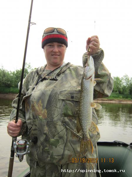 Изредка проскакивали подъязки грамм на 400-500. Хочу заметить, что как сразу я одела БлюФокс 4-ку, так ни разу и не меняла блесну. А Саша откровенно куражился - ставил и различные блёсны, и воблеры, и мелкоджиг - клевало на всё. Но время поджимало и нужно было ехать на обед. В одном месте всё же остановились ещё раз и я выхватила неплохого подъязка.