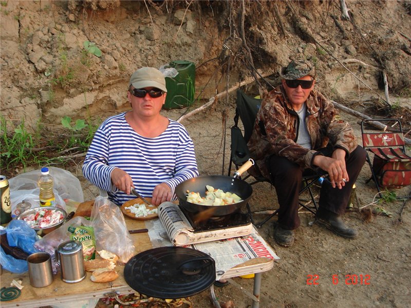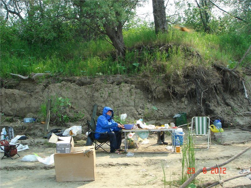 все налопались и коротали вечерок в тесном кругу. Время промчалось незаметно, надо бы уже и расходиться, но так не охота!... Ведь тихий вечер, река, костёр, задушевные беседы - это такая приятная часть отдыха души и тела!