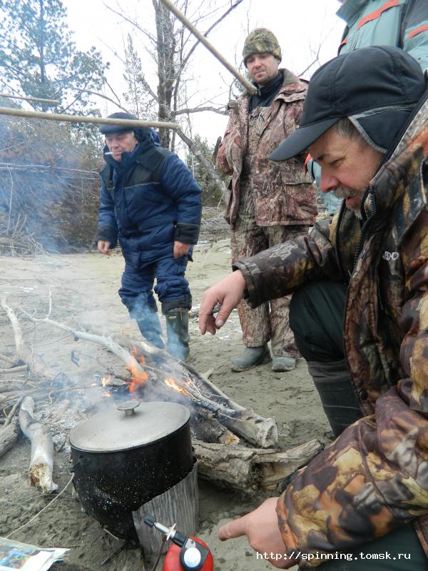 Потом появился Кэп с котелком, таинственным видом и поставил его на огонь (не таинственный вид, а котелок), произнес заклинание "Курица сваренная в обской воде - это что-то особенного!"...