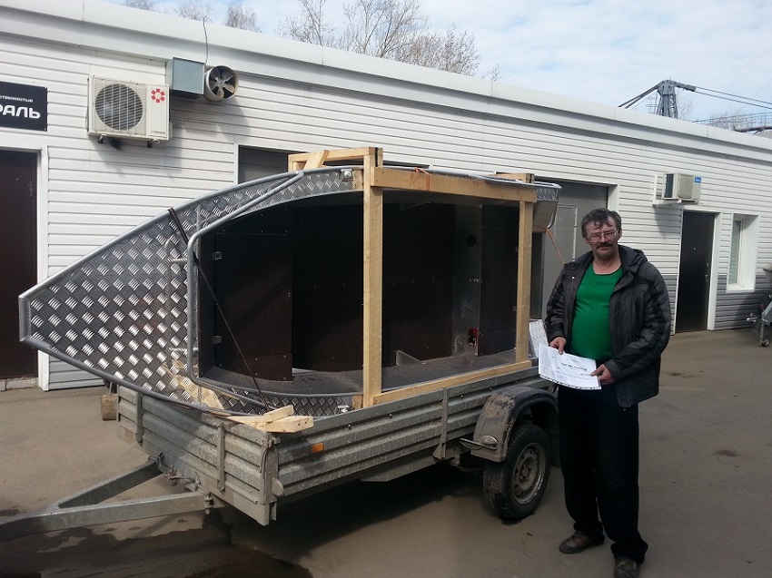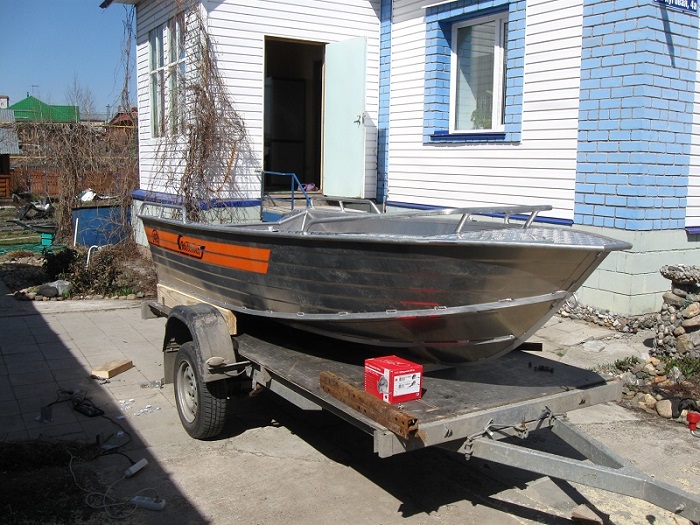 Женя к моему приезду уже загрузился на прицеп. Прицеп, кстати, оборудовал просто и эффективно – имеет, хитрец, конструкторскую жилку! К тому же соорудил толковую проставку на транец, слегка приподнимающую мотор.