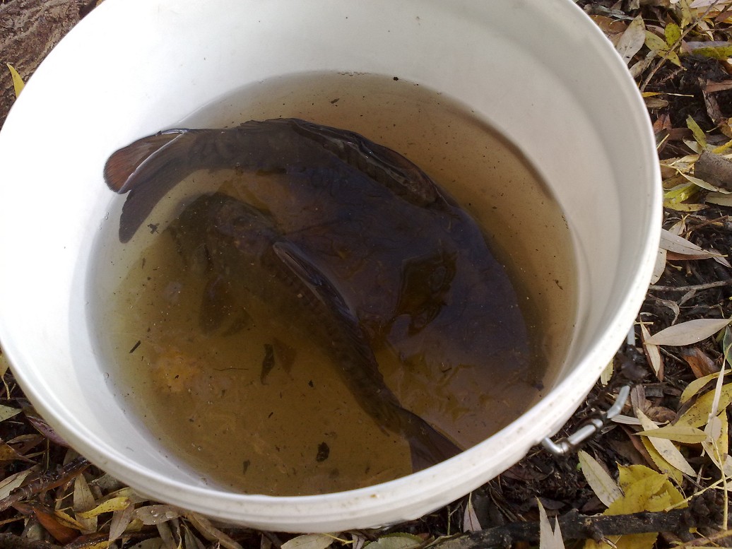 . Меняю кормушку на металлическую. Очередная поклевка, и вот карпик уже на килограмм.
