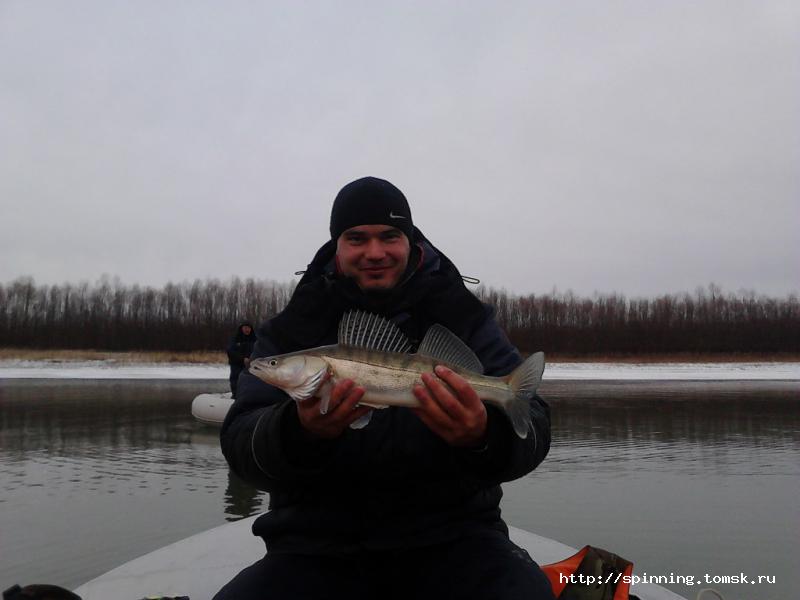 Не думал-не гадал, но получился выезд на воду, спасибо Игорю Владимировичу за приглашение закрыть сезон. Выезд в 06.00, и вскоре мы на берегу Оби. Разгрузка, накачка лодки и в предрассветных сумерках выдвигаемся к месту ловли. Мы уже там не первые. Встаем на точку и забрасываем приманки. С утра поклевок было прилично, но реализация примерно 1:10. В ходе эксперименов сложилось впечатление, что в основном рыбу интересует белый и зеленый цвета. Игорь обрыбился первый :20: , Зачетный судачок! У меня "не мой размерчик" и пришлось отпустить подрастать, затем еще одного. Игорь ловил сразу зачетных.