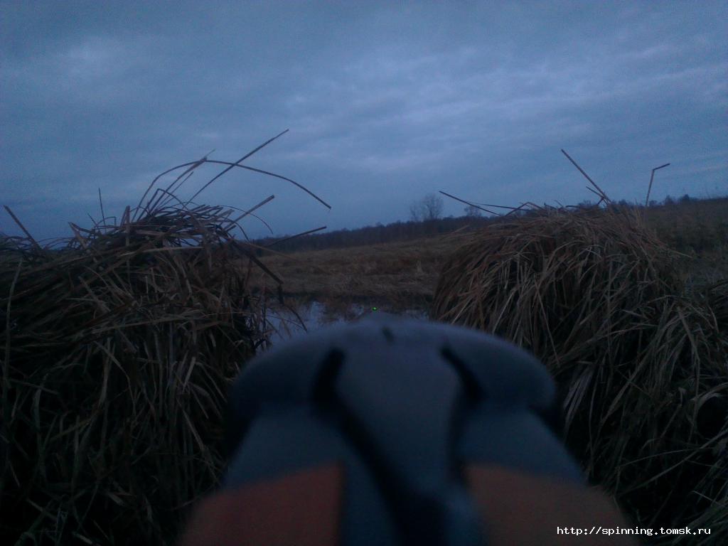 только приехал с охоты... начал тему продолжаю. испытал мушку на охоте,очень понравилось!светится круто! ну конечно в самой темноте не светится.но горит до талого!!!! фото прилагается!!!! фото со скрадка!!!!!! P.S. никаких поправок на цель не делал утка падала.. и еще лазил по дебрям...крался к утке.полз. и т.д. ничего не отвалилось и не отклеелось...